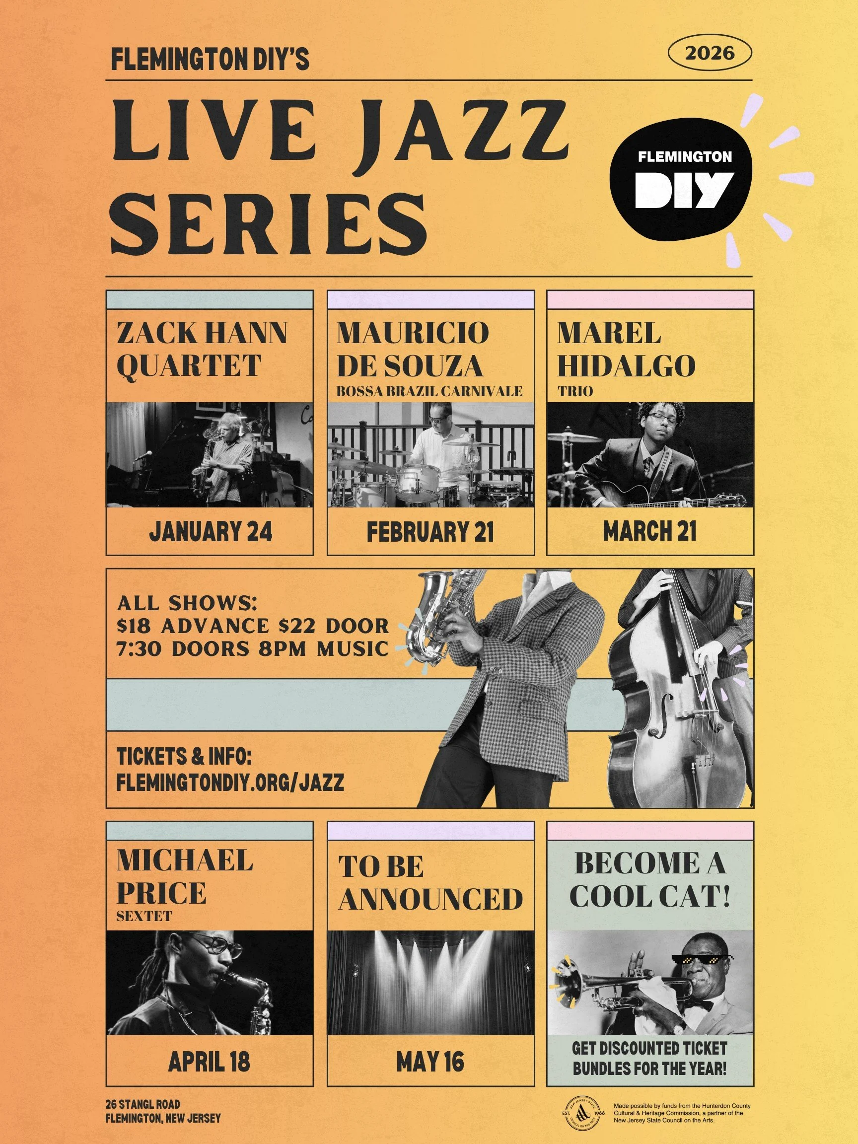 Local jazz favorite Zack Hann leads a Quartet to kick off the 2026 Jazz series at FlemingtonDIY on Jan 24th, at 8pm, all ages welcome. Visit FlemingtonDiy.org located in the Stangl Arts District. Free parking.